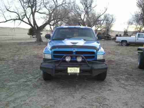 I have owned the truck for almost 6 years I am the second owner as far as I know. This is a nice truck very dependable but it does need a few wear items replaced. The 2 front tires are new they have about 1500 miles on them the rear tires are at about 60 percent tread left. the wheels are new they have been on the truck about 5 months. Custom paint job is 5 years old and still in good condition, there is a small dent in the hood , a small dent in the upper rear corner of the rt box panel and a crack in the upper front of the right front fender where there was some prior body work. truck has cat back dual exhaust, new carpet,new windshield, blue bed liner. I have well over ten grand in this truck. The front seat has some tears in the side normal wear getting in and out. I also have a ranch hand front bumper with a winch mount,that was over a 1000.00 winch not included that I will throw in with it if it brings 3500.00 or more less than that I will keep bumper and sell separate. any questions email I will answer asap I will not ship this if you want it shipped you will have make your own arrangements