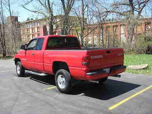 Very very clean and well maintained is this 1999 Dodge Ram 1500 Sport 4X4 quad cab! Well equipped with automatic transmission, air cond ( cool not cold) pwr wins, locks & mirrors, tilt wheel, cruise control, leather interior, wood grain accents, power drivers seat, chrome alloy wheels and side steps, spray in bedliner, dual flowmaster style ( deep throaty sounding) exhaust and more....Runs great, looks great, no lights on dash like check engine, no visible rust. 2 rear doors open up suicide style seating for 6. Clean title, Being sold Mass State inspected!