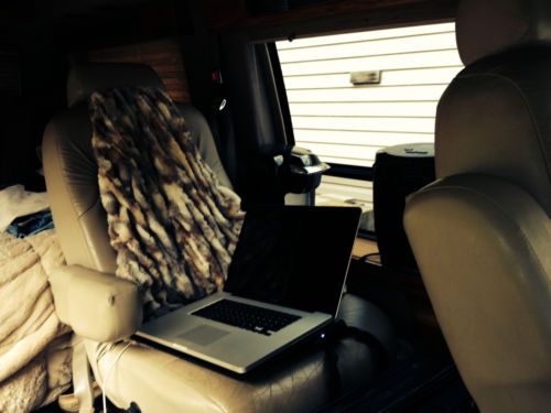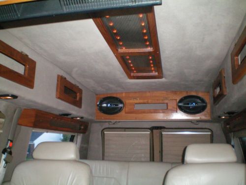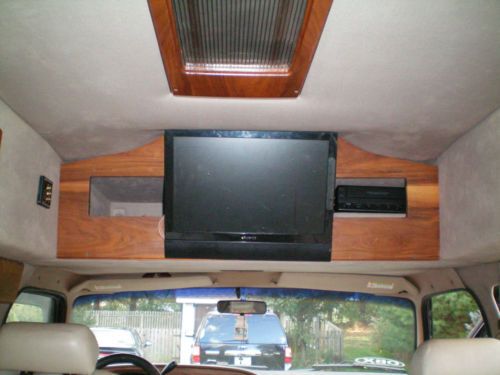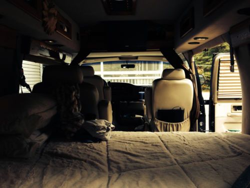 Runs excellent. Four new Bf Goodrich Radial T/A's with less than 3000 miles. Exhaust and brakes replaced two years ago. Full leather interior with three captains chairs and electric back seat that converts to a bed at the push of a button. Kenwood stereo that sounds amazing! Flat screen TV with built in dvd player. Coffee Maker, Heater and Lamp Light for reading hooked to electrical source. Separate stereo with earphone plug ins for private listening. Raised roof for more headroom. Mood lighting built in to ceiling and sides of interior. Ice cold A/C. Has small dent in right front corner of bumper.Van is not perfect but looks really good. Van has lot of good years left in it.