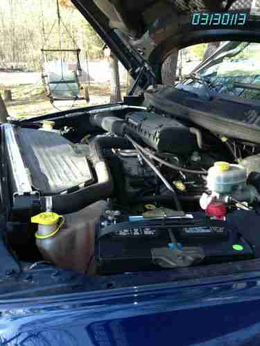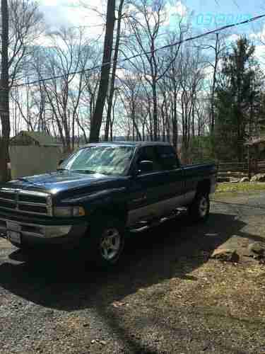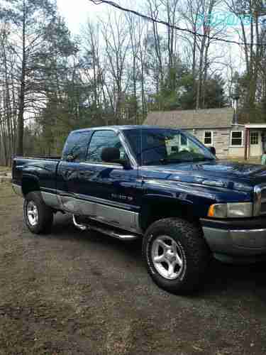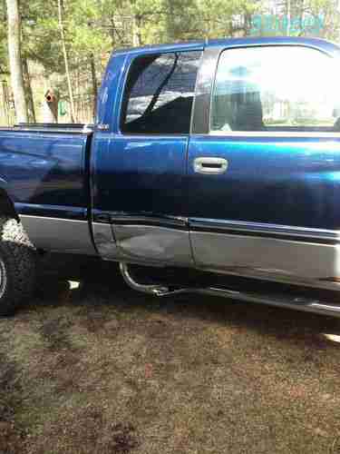 I have a 2 tone Blue & Silver 2000 Dodge Ram 1500 SLT Laramie 4X4 4door short bed with a salvage title...My Baby got T-Boned on the passenger side and the only reason it was totaled is the parts need to be rust free and with Nationwide Ins. needs to be NWCPP certified (Nationwide Crash Parts Program) and they couldn't find any rust free doors here in PA, the 2 doors were over 3 Grand rite from Dodge, PASSENGER SIDE DOORS ARE JAMBED SHUT & WON"T OPEN WITHOUT SOME FORCE so I settled and bought it back, ck out the pics, Truck runs like a dream, treads straight, no bent frame, chassis, or bent rims... has slight rust undercarriage and rust on bottom of drivers and passenger door (smashed), I bought this Truck used from a dealer with 45,000 miles in 2002... it has been repaired 2 times before, the first I slide off the road in snow on a corner and slide into some trees off an embankment, that was the largest, they replaced the whole cab and passenger doors, I have Pics if yur interested, the 2nd a deer came off a field and rammed me on the left rear around fuel cap...Interior is average, no rips or tares, only couple cigar burns, carpet is still great, only drivers mat heal area, Tires are BF Goodrich all terrain T/A KO-LT 285/70R 17 with allow wheels, only have 29, 505 miles on them and plenty of meat left...Also will throw in 2 sets of carbide V snow chains....stock 6 speakers, Stereo does not stay and is an extra $200.00 if interested: Its a Kenwood Excelon KDC-X869 cd & radio receiver with 50 watts a side, Now this trucks MPG on this 5.9L is 10.5 - 12 on how you drive and it gets better MPG on Sunoco fuel, I just spent a grand on new Radiator, water pump, thermostat and stock muffler, all u-joints and 4 wheel drive joints and idler arms, lower a arm bushings have all been replaced, also just had tranny serviced and new overdrive switch...Have recpts for all, overall truck runs excellent and like I said drives like a dream, I hate to loose her...