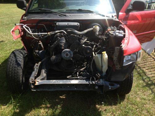 we bought this truck as a parts vehicle but if someone wanted to, they could restore it. This vehicle was in an accident. It slid off road and hit a tree, that is why the front bumper, hood and pass fender are off vehicle. It looks like the frame was not damaged just the mounting bracket for the bumper that is attached to the main frame. This truck was a daily driver according to the previous owner and the motor,transmission and 4 wheel drive worked properly. No air bags deployed. what my son needed off the truck were the transfer case, drive-shaft and rear-end. This truck has the blown rear from my sons truck that needs rebuilding. The motor has 153567 miles on it. We drove it onto the trailer and now we can only start the motor if you want to hear it running. Three of the tires are like brand new. The 4th one needs replacing because the tire is worn and the rim was stuck on the axle and the rim and stud had to be drilled out. There are many goods parts left on this vehicle. We have a clean title in hand/ not salvage title. Please check out pictures and Please contact if you have any questions. Thanks for looking! |