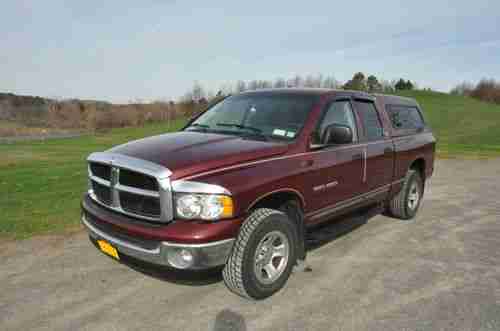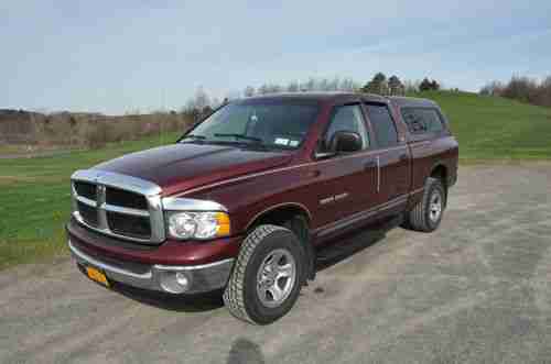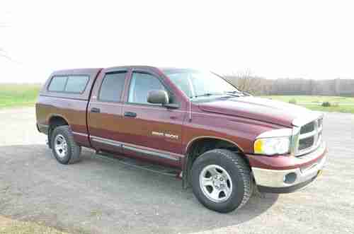 Up for auction is my 2002 Dodge Ram Quad Cab SLT 1500 4x4. 5.9 V8 gas motor. Only 91k miles! Power windows, power locks, cruise, running boards, clean cloth interior, keyless entry, Remote start. Runs and drives great, this truck has given me no problems. 4 wheel drive works 100%. Truck does have some small cracks in dash board (as shown in pics) which I'm told is common with these trucks. Truck is in overall great condition with some rust on passenger side rear wheel well (see pic). Power windows all work from driver's side controls 100%, back window control switches work intermittently. I'm looking for something a little smaller so that is the reason for sale. Please don't hesitate to ask any questions, I will respond ASAP.