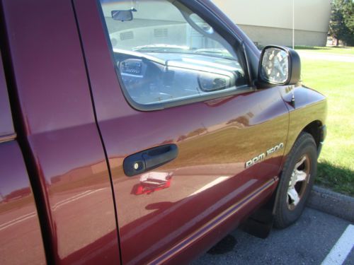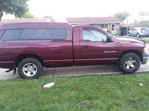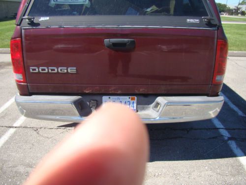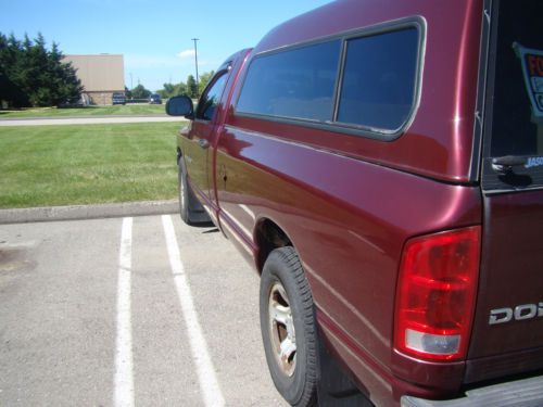 Up for auction is my 2002 Dodge Ram 1500. I am the second owner of the vehicle. I have owned it since December of 2013. I got the truck from my uncle who purchased it new. He put a lot of highway miles on the truck but he always maintained it very well. Which goes to show considering the condition the truck is in for the mileage. I am an ASE certified technician and have been servicing the truck for him throughout the years. I am selling the truck because I have way to many vehicles and I only drive the truck 2-3 times a month. I thought I would be using it more but i'm not. Exterior: Truck has some rust spots. I took photos of the area's so you can see them. It is actually not to bad compared to most dodge trucks of these years. There are some some scuffs and scratches on the body of the truck but no major dents or scratches. I don't believe the vehicle has ever been in an accident. The chrome on the bumpers is in pretty good condition but has some peeling on the bottom of the rear bumper that is not visible. The passenger side mirror has been replaced with a cut piece of glass. The topper and bedliner are in good condition. Truck has a hidden hitch and has a working 7 pin trailer connector. Interior: The interior is in good condition. Non smoker. No tears in the seats. The middle seat/arm rest functions as normal. All interior accessories work. All gauges work. No warning lights are on. The truck has a nice area behind the seats that can store a lot of cargo. The tire changing tools and jack are there. Comes with Dodge factory floor mats. The dash has 2 cracks in it. (see photos). Powertrain/Drivetrain: The engine and transmission are in great condition. Engine is strong and transmission shifts smooth. There is a very minor leak at the transmission output shaft seal. The engine seals are in good condition and there are no coolant leaks. The rear pinion seal also has a minor leak. Air conditioning and heat work excellant! Steering and Suspension: The tires are in excellant condition and are all matching set. Comes with full size spare. The front suspension is in pretty good shape. The front lower ball joints have a small amount of play as well as the passenger front wheel hub. The shocks have been on the vehicle for quite some time now and may want to replace in the future, but the truck rides good. As you can see the truck is in pretty good condition. It would make an excellant work vehicle or farm vehicle. The 8ft bed with the extra tall topper is great for hauling cargo. Honestly I want keep the truck but does not make sense for the amount of money I spend on insurance and registration versus how much I use the truck. Buyer is responsible for shipping and picking up of vehicle. I will take a $500 deposit within 24 hours of the sale with cash due at pick up or will take full payment thru paypal.