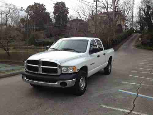 This is an Auction for a 2004 Dodge Ram 1500 ST 4x4 Crew Cab 5.7L HEMI V8 with 159,000 miles. This Truck is a rare find because it is an ST with the 5.7L HEMI V8. I am changing professions and I need to sell this truck. This is an excellent work truck and runs great in 2 wheel or 4 wheel drive. I have owned the truck for 3 years and have maintained it regularly, changed the brakes, changed the tires and change the oil regularly. The cloth seats are in excellent condition with no tears or rips. The interior is clean and well kept, the cd player and stereo work great. The exterior is in good shape too. I purchased the truck with a dent in the right rear fender. It is equipped with a Rhino Liner that is in fair shape.