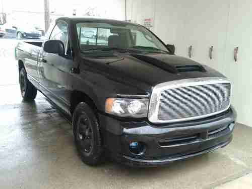 2004 Dodge Ram 1500 SLT single cab with an extended 8ft bed. 2nd owner, purchased with about 45k miles. The truck was repainted black a few years ago, the original dark blue color can still be seen in the door jams and engine bay. The grill, headlights, bumper have been changed and a non-functional hood scoop has been added. Tires were purchased new about a year ago, they have 80% thread left. Exhaust has been replaced from the headers back, catylitic converters have been removed, it is not quiet by any means. It runs and drives perfectly fine, it's still being used as a daily driver. The interior has a couple of cigarette burn marks. Transmission shifts perfectly fine, no slipping. Brake rotors, pads and wheel bearings were all recently replaced. It's a nice looking truck and runs great, the only reason why I'm selling it is because I want to buy something smaller. It's ready to be driven anywhere. It's also for sale locally, I reserve the right to end the auction early. Happy bidding, no reserve!!
