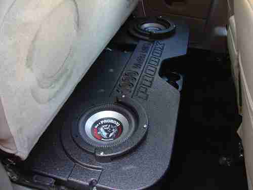 New JVC Head Unit, Zapco Door Speakers, Zapco Tweeters, Zapco Crossovers Under Seats, New ProBox with Two New 10's, New Kicker 6 Channel? (Amp is behind the seat so I cannot tell for sure if it is Kicker or Kenwood)
