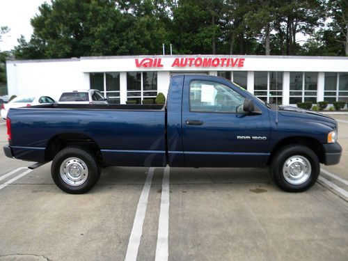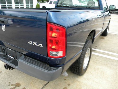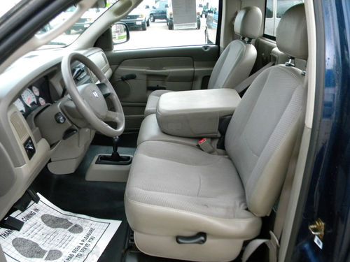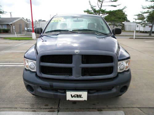 WE ARE OFFERING A 2005 DODGE RAM 1500 4x4 REGULAR CAB WITH ONLY 25,000 ORIGINAL MILES! THIS IS AN EX GOVERNMENT UNIT WITH AN EXCELLENT SERVICE HISTORY. THE ENGINE RUNS SMOOTH WITH NO LEAKS AND THE TRANSMISSION SHIFTS PERFECT WITH NO HESITATIONS. OPTIONS ON THIS RAM INCLUDE: 4.7 V8 ENGINE, AUTOMATIC TRANSMISSION, ST TRIM PACKAGE, POWER STEERING, ABS BRAKES, ICE COLD AIR CONDITIONING, DUAL AIR BAGS, AM/FM RADIO ,HEAVY DUTY COOLING, 4 WHEEL DRIVE, GRAY SEATS, RUBBER FLOOR COVERING, 8 FT BED, MANUAL LOCKS, MANUAL WINDOWS, TILT WHEEL, STEEL WHEELS AND TRAILER TOWING PACKAGE. WE ARE A VIRGINIA DEALER #4137, SERVING OUR AREA SINCE 1996. WE STOCK OVER 100 COMMERCIAL VEHICLES READY FOR DELIVERY!!! ALL RETAIL SALES ARE SUBJECT TO A $250.00 PROCESSING FEE TO COVER TEMPORARY TAGS AND TITLE TRANSFER FEES. WINNING BIDDERS MUST CONTACT US WITHIN 48 HOURS AFTER THE AUCTION ENDS. IF YOU HAVE ANY QUESTIONS, PLEASE CALL (800) 569-7278 OR (757) 461-7552. THANKS FOR LOOKING AND GOOD LUCK WITH YOUR SEARCH!