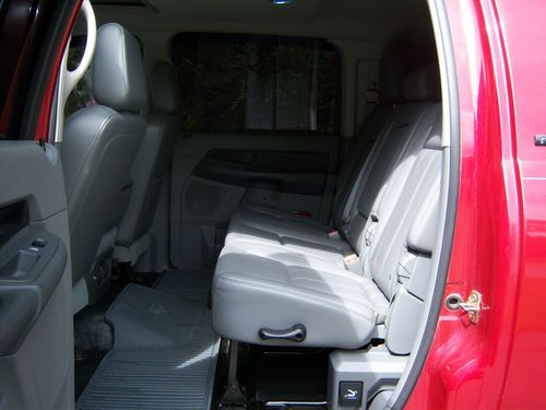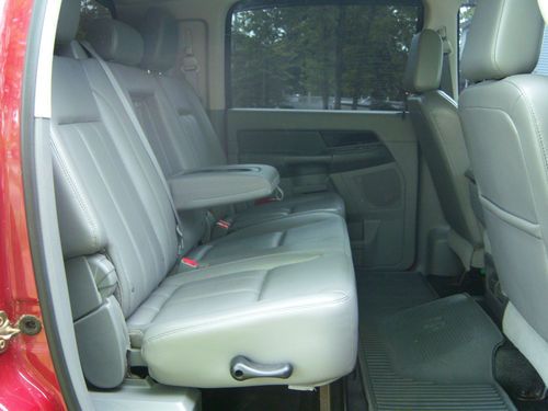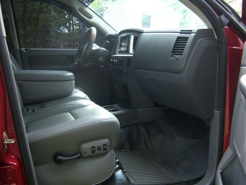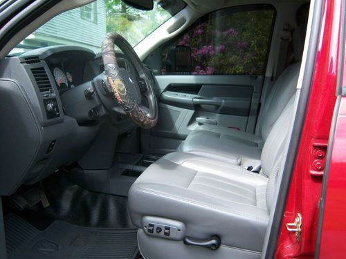 Truck is a Laramie so it has almost every option available. Leather power heated seats with center console storage top and bottom, floor has been changed to vinyl, dodge slush mats, custom sound system: Kenwood CD/DVD head unit with back up camera, all speakers upgraded, custom subwoofer box behind rear seat with 2-10" subs and an amplifier with bass control at dash. led interior lights, power rear sliding window. Also has power sunroof with shade cover, tinted all the way around, overhead display with temp, MPG, and garage door button. auto dimming rearview mirror.
