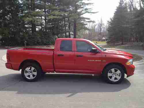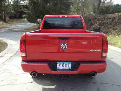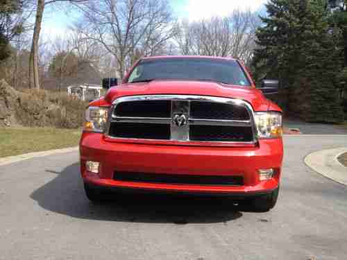 2012 Dodge Ram Quad cab 4x4. truck has only 5900 miles and runs and drives like new. Has 5.7 hemi motor, auto trans, 4x4 on the fly, 20" factory wheels, red with blk interior. Truck was bought new in august of 2012. In December 2012 it was damaged on left front. Accident was not original owners fault. Due to the fact that he still had 56 payments remaining he demanded that other parties insurance company pay out full cost of truck and salvage it. We purchased truck in feb 2013 from insurance company with 5500 miles There was no frame damage.