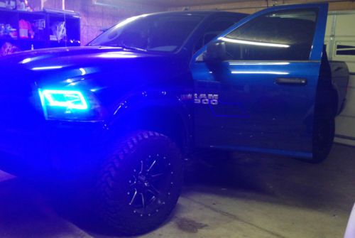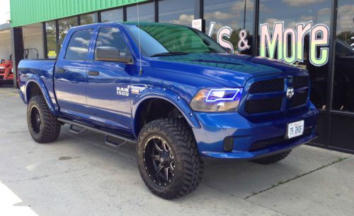 THIS IS MY 2014 DODGE RAM 1500 PURCHASED BRAND NEW JUST INSTALL A 6" ROUGH COUNTRY LIFT, 20X10 FUEL MAVERICK WHEELS, 35X12.5-20 NITTO TRAIL GRAPPLER TIRES INSTALLED AT 7,000 MILES ALSO PAINTED FENDER FLARES, COLORED BUMPERS, BLACK N-FAB NERF BARS, BLACK FOG LIGHTS, BLACK HEADLIGHTS WITH HID KIT AND BLUE ORACLE ANGEL EYES IN THE HEADLIGHTS, TEXTURED BED LINER, TINTED WINDOWS, BACK UP CAMERA, AUX PORT, USB PORT, TIRE PRESSURE SENSORS AND XM RADIO!. ONLY THING WRONG WITH THIS TRUCK IS ON THE FRONT LOWER BUMPER, A PIECE OF TIRE TREAD ON THE INTERSTATE FLIPPED UP AND HIT IT AS SHOWN IN PICTURES