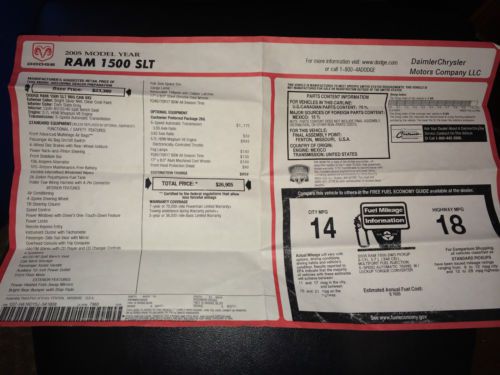 One Owner 2005 Dodge Ram SLT 1500. Truck has been meticulously maintained. Runs amazing, drives beautifully! Full tow package. 5 speed automatic, 345 horsepower-350 foot pounds of torque hemi, 3.92 rear end. All fluids changed before factory suggestion (always synthetic oils). New battery, radiator, hoses, belt, water pump, pulleys, gas shocks, brakes, unidirectional Goodyear tires (70k miles rating), Pioneer stereo, speakers. Tinted windows, Flow master Daytona side exhaust(sounds great!). New paint job. Gets 8-10mpg city, 24-27mpg hwy. I even have the original window sticker! I can't tell you how much I hate to part with this truck but 3 vehicles in the city is too much. Whoever gets this truck is getting a dream vehicle that is fast, beautiful and reliable. Clear title in my safe!, A/C ice cold, All scheduled maintenance, All records, Fully loaded with all the goodies, Looks & drives great, Must see, New tires, One owner, Perfect first car, Seats like new, Title in hand, Upgraded sound system, Very clean interior, Well maintained