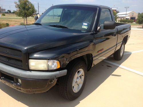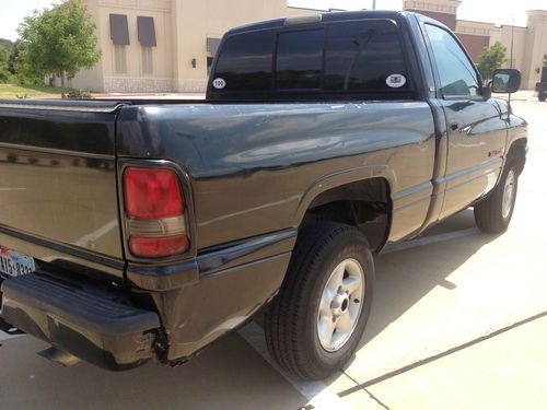 97 Dodge Ram 1500 short bed. 360 V8 Auto, engine runs good. Drives. Needs transmission work. 212,361 miles. New tires, dash cap, carpet and headliner replaced recently, registration and inspection are current. Driver's seat and center console have tears. Some body damage. Listed locally so your bid may be canceled and the auction closed.