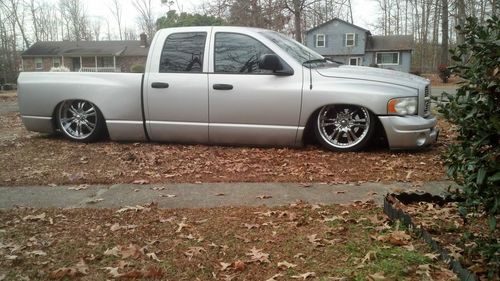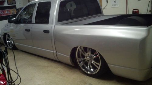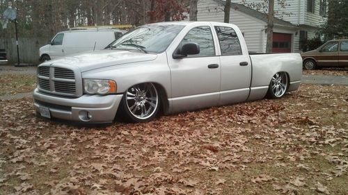 2004 Dodge Truck 5.7 hemi motor with cold air intake, full dynomax exhaust, programmer, only 62,000 miles garage kept like new interior, fully loaded, four door, coat liner in bed, truck has 4 corner air bagged using 1/2 inch lines, 5 gallon tank, dual compressors, uses 4 switches and also has 2 switches tied together controlling front and rear, Dakota digital gaues, 3 battery hookup, larger alternator 22'' panther wheels has skid plates welded on framed so truck drops to the ground but will raise 3 inches above wheels, has shaved taillights, shaved gas door, tailgate handle and custom tubs in bed and custom front inner fenders, has molded in roll pan but it has a little damage but I have another one for it also have spare rim and 2 tires, way too much to list..... has custom gas tank with spout in bed, gas gauge just stopped working probably sending unit which it uses a stock dodge one but ive been clocking the miles to know how much is in there.