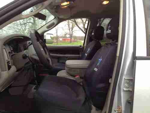 Now, for all the good stuff. This truck has the hemi engine, 4 doors, oversized 20' wheels, and is 4 wheel drive. It has the tow package with hitch, tow mirrors, and bedliner. It also has a 6 disc changer and power drivers seat. The seats have always been covered so they have no rips or tears, but they aren't in perfect condition as the previous driver didn't have covers. All these extras have been added over the last year: