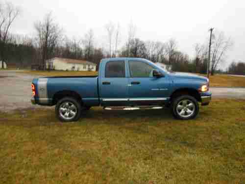 2003 dodge laramie 4 wheel drive loaded up and everything works great ,there is 175000 miles on but runs and drives great ,in fall replaced basically everything in front axle-ball joints,tie rod ends,half shafts and wheel bearings also replaced two tires other two are prob 65% tread,also there is a 2 inch lift kit installed ,this truck is my wifes so has always been mantained to its fullest,there is a little rust over the rear wheels no holes or dents in truck very good driver with 20 inch wheels,buy as is and truck is for sale locally so reserve the right to end if sells locally .if wish to look at truck contact me at 989-550-7140 or jeffh989@yahoo.com.TRUCK HAS BEEN WASHED AND VACUUMED OUT more pict to come