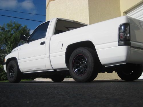 Thanks for checking out our listing on this great deal and No Reserve Auction 1996 Dodge Ram 1500 Sport that is a running driving project.This Ram is driven daily,has cold a/c and sounds and looks amazing,everyone comments how cool it looks and is priced right.This Sport truck was completely stripped a few years ago and sprayed with a very quality paint job with all the moldings removed for that clean Sport truck look.The truck has some nice custom features such as a 1988 90k miles 5.9 Litre Strong running engine installed,shift kit,HID headlights,lowered front and rear,roll pan,hidden hitch and custom exhaust.The truck also has leather interior,power drivers seat,power windows and locks and everything works properly.The truck has been driven 50 miles a day everyday for the last 6 months and is safe and reliable and fun to drive.Although the truck is in great shape and can be driven anywhere it does need front end bushings and a speed sensor or adjustment every once in a while it downshifts for a second,but shifts perfect and drives great.There are also a few minor blemishes please look at the last few pictures where i am pointing.Although the truck is sold as is please take time to read our feedback and bid with confidence and these pictures where just taken.Transportation is the responsibility of the fortunate new owner we will assist any way we can with storing and loading.Florida residents must pay 6% sales tax and tag or transfer,no dealer fee.Thanks for looking this Sport Truck is a bargain for what we are asking so take advantage if you are looking for an excellent running driving project,please feel free to email me with any questions and good luck!!!