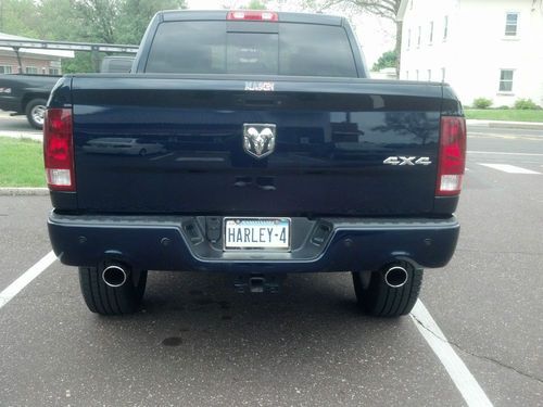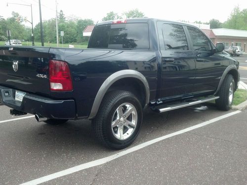 Dodge Ram 1500 Sport Crew Cab 4x4. Color: True Blue Pearl Coat Exterior, Dark Slate Interior. Leather Bucket Seats This truck has every option Dodge offered in 2012. Trailer Brake System, 10 way Bucket Power Seats, Moon Roof, Factory Painted Tuff Coat Bedliner, Power Rear Window, Factory Navigation, Rear Back Up Camera, Sirius Radio, Limited Slip 3.92 Rear Axel, Heated Steering Wheel, Heated and A/C Seats, Halagen Headlamps, 20" wheels, New Tires- size: 305-60R-20 with 280 miles on them. Truck has a 3" Lift in the rear and a 2.5" lift in the front, Truck rides as good as it looks. Towing Package with Factory Trailer Brake System, Factory Dual Exhaust, 500 watt Factory Alpine Stereo, 5.7 Litre Hemi, 6 speed Transmission, tired of writing, many many more features. Never put anything in the bed. Wheel Well trim Moldings, Step Side Bars. I am the original owner. I bought this truck from Chapman Dodge in Horsham, PA. I don't smoke, so it is a smoke free truck. Changed the oil at 3,000-K and 7,000-K, 100% synthetic mobile oil only. Perfectly Clean Carfax.