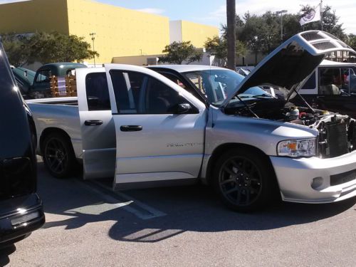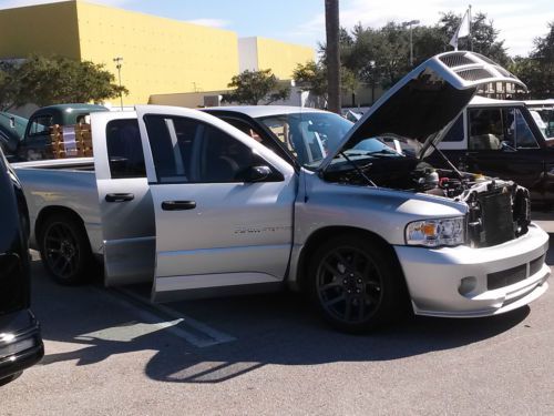 Rare 2005 Dodge Ram SRT-10 Crew Cab 8.3L V-10 500 HP Truck. 72,000 miles on this still fresh Viper Motor.Bright Silver Metallic Clearcoat Adult driven runs PUUURfect, and very well maintained. Very nice, VERY FFAASSTT and fun to drive! Has the speed of a sports car with the versatility of a truck. The truck has many modifications (Bassani headers, 3in true dual exhaust with hooker mufflers, BBK thottle body, 180 degree thermostat, Cold Air intake w/catch can, 3/8 upgraded pushrods, 2/4in drop with upgraded rotors shocks and sway-bars front and rear with a kicker shock. cryo dipped rear gears. spray-in bed liner and a few extras I'm sure I'm forgetting and SCT tuned, ) . Tow Package, Spoiler, Leather and suede interior, Infinity Premium Sound. Call me or email if you want to talk about it. NO TIRE KICKERS or JOY RIDERS.SERIOUS INQUIRIES only don't waste my time as I am not wasting yours!! It truly is a great truck. Non-smoker, Perfect first car, Very clean interior, Well maintained. buyer responsible for picking up or shipping to them at there cost. I reserve the right to end this auction early as the truck is also for sale locally.