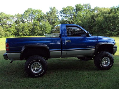 1994 Dodge Ram Shortbed pickup truck,4x4,blue and silver, 159k, 5.2 liter,automatic, PW, PD, PS, PB, air, cruise. This truck is in excellent shape for the year with lots of modifications, always garage kept. Mechanically excellent shape, runs great. Has new PA inspection, tinted windows all around, new diamond plate tool box, push bar with driving lights, side steps, fender flares, 5.5 inch long arm Fabtech suspention lift, new 12.5x35 BF Goodrich Mud Terrains on 15x12 polished aluminum M/T wheels, K&N air filter, tailgate protector. Interior is in good condition with new seat cover, seats are still in decent shape. CD player, CB radio, new floor mats and the headliner is not sagging. This truck needs nothing but a new owner. I just don't drive it enough, too many vehicles. There is a long list of new parts installed, too many to list. Please call with any questions or for more details 610-746-3742, thanks.