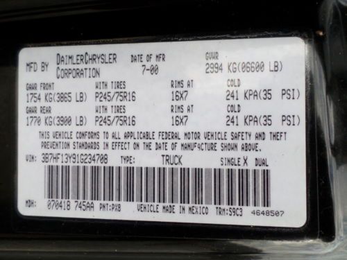 2001 dodge ram 1500 sport extended cab pickup 5.2l 4x4
