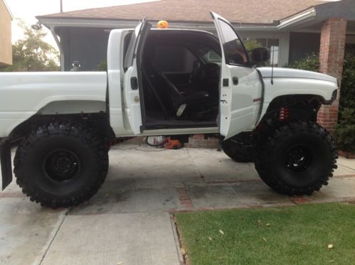 Wht we have here is a custom 1998 dodge ram 1500 4x4 monster truck.with rebuilt motor.sits on 44sTSL super swampers.full roll cage master craft seats Simpson 4 point belts.flow master,and headers,has flow master intake tranny has btr gearing,sky jackr limiter straps.its a daily driver and a hell of a lot of fun to drive.it well make a great mud truck rock crawler.or zombie smasher.its a bad fast Loud truck.you will love it as I have.I CAN send more PICS JUST ASK.THANK YOU..