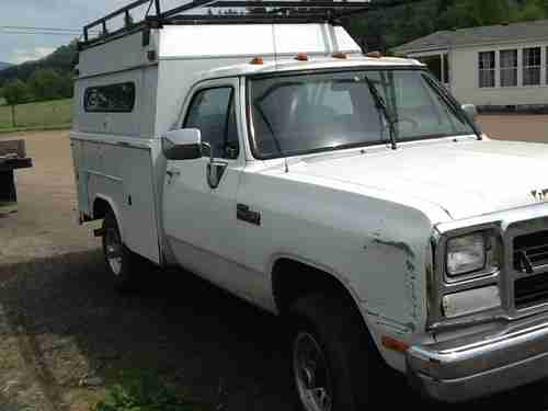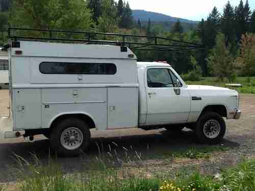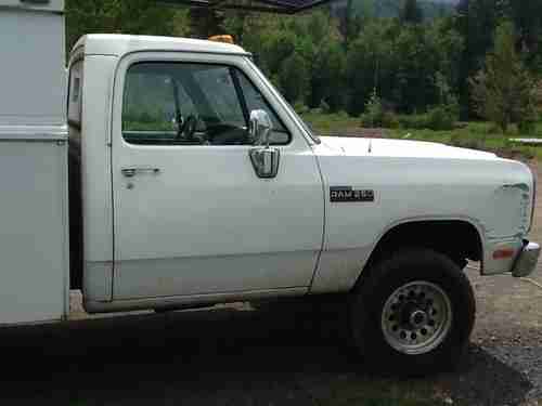 1991 Dodge Ram 2500 4 wheel drive 5.9 diesel with the 5 speed manual getrag transmision this cummins runs great has almost 286000 miles on it starts right up has been well maintained has been used as a work truck for a small contractor interior is a little rough not terrible no radio a rip in the seat plastic around steering column is off exterior has a dent in passenger side fender and paint is chipped on front of hood missing a front turn signal light mechanically the truck runs and drives down the road the engine sounds great and transmision seems good it could use an alignment or possible tires rotated the truck should be gone through and serviced I have no maintenance record on the truck the 4 wheel drive works well has manual locking hubs.