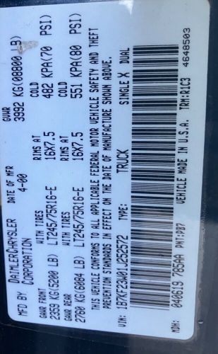 VIN (Vehicle Identification Number): 1B7KF23W01J252572