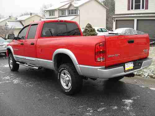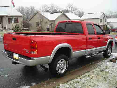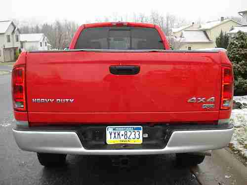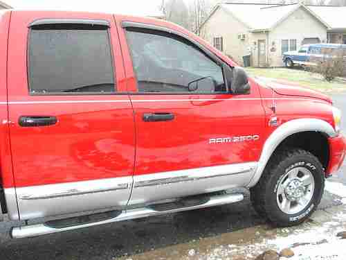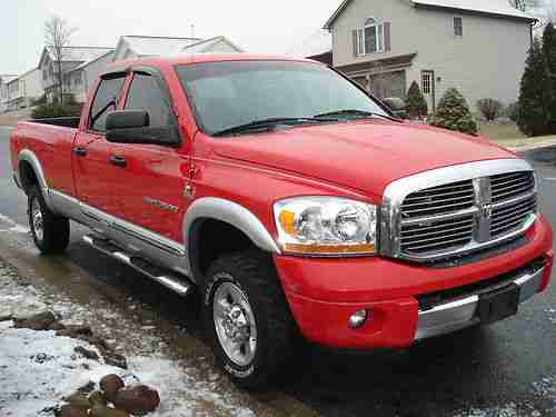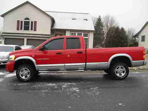 Up for sale is my 2006 Dodge Ram 2500 Crew cab "Laramie" 4 wheel drive.Its red with silver and gray leather.The truck has a cummins turbo diesel engine with an automatic transmission.It has a dashboard activated 4 wheel drive. The truck belonged to a senior citizen couple that pulled a bumper pull camper trailer for 4 summers.In the bad economy it got repossessed in 2010 with 53,752 miles.Well either the bank or repossessing company or Pennsylvania Dept Of Transportation incorrectly titled it with 533,752 miles .After I aquired the truck I eventually got motor vehicles to correct it but it says 53,752 miles and Not Actual somewhere on the title.So I am seling it TMU true mileage unknown now. I use the truck occasionally and it works great but I dont use it often enough so its for sale now.
