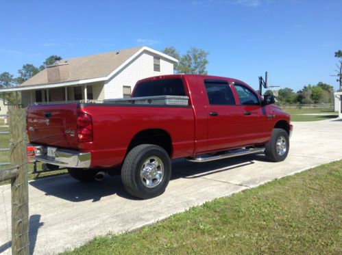 You are looking at a 2007 Dodge Ram 2500 Mega Cab 4x4 powered by a mighty 6.7L Cummins Diesel which is the one with SUPER EFFICIENT FUEL MILLAGE! The SLT package from Dodge is loaded with power mirrors, power windows, power locks, tilt, cruise, am/fm/cd player, overhead trip computer, keyless remote, power seats, running boards, factory tow package with receiver hitch, factory bed liner, factory fog lights and more. The truck also has over sized Nitto Grappler tires that are about a year old and a high quality Trail FX tool box. If you have any questions, please call me at 321-984-2689 NOTE!!! Real bidders are welcome to call. No dealers or commercial third parties..I will hang up on you. Payment: $500 NON-REFUNDABLE deposit via PAY PAL required within 24 hours of auction close. Final Balance to be paid in cash or certified bank / teller check only. Below is a list of manufacture listed options - Happy Bidding!