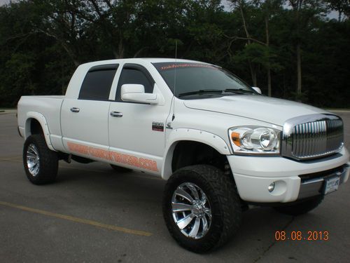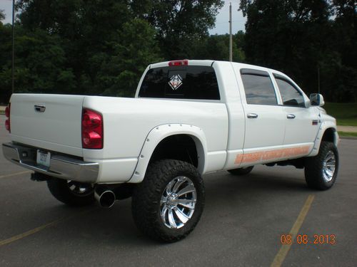 UP FOR AUCTION IS A 2008 DODGE RAM 2500 LARAMIE, 6.7 CUMMINS TURBO DIESEL, 4X4, AUTOMATIC TRANSMISSION, ALL POWER OPTIONS INCLUDING POWER SEATS, POWER SLIDING REAR WINDOW, EXHAUST BRAKE, POWER MIRRORS, TOW PACKAGE, ADJUSTABLE PEDALS, DUAL CLIMATE CONTROL, LEATHER INTERIOR WITH HEATED FRONT SEATS, TINTED WINDOWS AND I'M SURE OTHER OPTIONS I AM MISSING. NOW FOR THE AFTERMARKET CUSTOMIZATIONS: