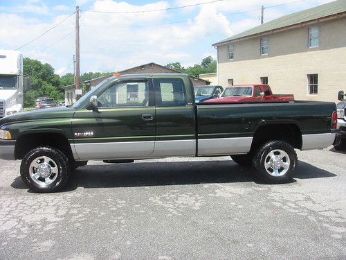Hello diesel family and friends, my name is Tom my wife and I have been licensed PA new and used DieselTruck dealers since the late 70's and have been involved in diesel trucks as our speciality. We have recently downsized to a small mom and pop operation here in carlisle PA (E-Motors) to sell 2 or 3 trucks a month, we are small and I do this more for a hobby than anything else.(low overhead low prices) I know these old cummins diesel trucks inside and out and I personally drive one and love these trucks emmensley. A few things to know before bidding or becomming interested in one of my trucks, I do not play games with the price, I do my homework price for fast cash sales on the buy it now that is what I need if you do the research you will see, however serious cash buyers are encouraged to bring cash offers close to what I'm asking maybe we can deal a little bit. However I do not take trades on my diesels , but I also do airport pickup at Harrisburg International,return 1 way rentals, shipping, have on call hours 7 days a week and I am a bonded tag agent and issue temp tags/title transfer on the spot at my office, I also do long or short deliverys and have on call hours 7 days a week from 9-9 east time. 717 991 0568 I reserve the right to close down ebay for any cash buyer with deposit online on phone or on lot, I deal first come first served with deposit,I do not finance and I don't think these old trucks have much bank value so please have cash in bank or bank check in hand prior to bidding or making offers would be greatly appreciated so we are not just spinning wheels...take care Tom 717 991 0568 Ok now here is a one in a million, how about a local 1 owner garaged 96 Dodge Ram 2500 Larimie SLT 4x4 extended cab with the 12 valve cummins turbo diesel engine with only 55000 original miles. This was a old fellows truck who bought it new and drove about 5 miles to work every day and babied this one. The 12 valve fires right up on a turn and just purrs like a 50k mile truck should. No leaks no mechanical flaws, the tranny shifts perfect everything works. Nice tight front end. Beautiful color and body/paint condition. No rust or dents, glossey paint. Interior great shape no smells or issues, some minimal wear and tear small nicks, dings, tiny scratches,just normal 96 truck stuff but nothing worthy of doing anything with that takes away from overall beauty of truck apperience, but has spray in bedliner, nice stereo, cold a/c, tow hitch but never towed with, factory books, keys and key fobs. Title in hand in my name ready to transfer, I have been driving this one I absautly love it and will hate to see it go. I plan to give her a complete service before it leaves, A true one in a million find don't think you will find another 12 valve with 55000 original miles, Don't buy a new one for $60K buy this one since its better than any new truck at a fraction of the price and from my 30 years experience I think it will outlast a new truck the way they build em today nothing like they used to. When its gone its gone you'll kick yourself...best offer gets it by the end of the summer or better yet just de horse me today and click buy it now good sound investment...Tom 717 991 0568 E motors Carlisle (shown by appointment only)