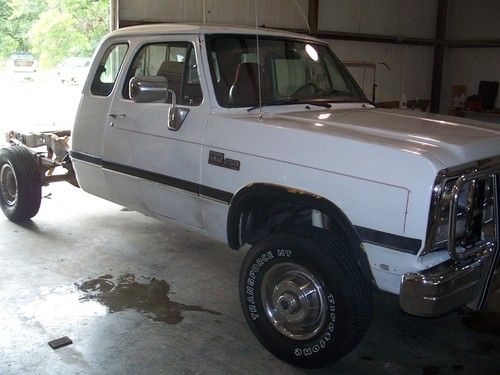 We traded for this truck here local; Cummins 12 valve engine is strong, starts immediately,good power, no smoke or leaks of any kind, transmission shifts great, four wheel drive engages as it should; small amount of slack in the steering but not excessive, brakes decent; interior is actually pretty decent considering the age of the vehicle, dash is excellent , door panels excellent, drivers seat needs attention, headliner is there but the red cover has been removed but backing is in good condition; body is tight, signs of previous body repair to the left side of the cab & corners, dents and dings are not major but paint is peeling here and there; all 4 matching Firestone tires in good shape; I would feel very comfortable with representing this truck to be of mechanical status to be driven anywhere. I do not have a history report at this time. Truck is for sale locally therefore I reserve the right to end the auction early if it should sell. Call Charlie at 479-225-1860 with any questions you might have.