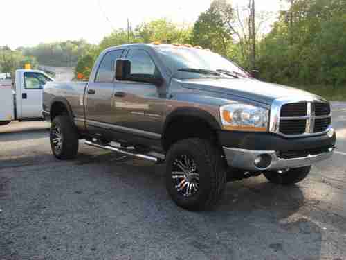 GREAT LOOKING 2006 DODGE RAM 2500HD 4X4 CREW CAB ""POWER WAGON"" TRUCK. THIS PACKAGE IS DIFFICULT TO FIND AND NORMALLY ONE THE HIGHER PRICED "HEMI'S" ON THE MARKET. BUT OUR SPECIAL INTERNET PRICE IS VERY REASONABLE AND PRICED COMPARABLE TO SIMILAR REGULAR HEMI RAMS. THIS TRUCK LOOKS AGRESSIVE AND IS DEFINATELY A HEAD TURNER. THE MINERAL GREY METALLIC PAINT SHINES UP NICELY AND THE CHROME TRIM AND CUSTOM WHEELS MAKE THIS TRUCK ONE THAT YOU WILL BE PROUD TO DRIVE!! THIS POWER WAGON HAS THE 5.7 HEMI GAS V8 THAT IS VERY FUN TO DRIVE. WHETHER YOU ARE CRUISING THE INTERSTATE OR PULLING THE FAMILY CAMPER THIS HEMI HAS PLENTY OF GET UP AND GO TO EASILY ACCOMPLISH THE TASK AT HAND. THE 5 SPD AUTOMATIC SHIFTS OUT SMOOTHLY IN ALL GEARS. THE TRANSFER CASE IS MANUAL SHIFT AND FUNCTIONS EASILY IS HIGH AND LOW GEARS. INTERIOR LOOKS VERY GOOD. NO SEAT TEARS. CARPET IS EXCELLENT. NICE WOOD TRIM DESIGN ACCENTS. POWER DRIVERS SEAT, WINDOWS, LOCKS, CRUISE, CD STEREO. THE WINCH THAT FASTENED INSIDE THE FRONT BUMPER IS NOT PRESENT. THE EXTERIOR LOOKS VERY NICE. SOME LIGHT SCRAPE SCRATCHES ON THE FRONT OF THE DRIVERS DOOR AND ON THE PASSENGER SIDE HOOD EDGE. OTHERWISE NORMAL SMALL DINGS/DENTS , SCRATCHES AND ETC. THE BED HAS A FACTORY BED LINER. THERE IS A FACTORY TOW PACKAGE. THERE IS NO FIFTH WHEEL PROVISION. THE CUSTOM WHEELS AND TOYO LT285 17" TIRES ARE BOTH LIKE NEW. THIS TRUCK IS AN EXCELLENT DEAL IF YOU ARE IN THE MARKET FOR A 2500HD TRUCK. YOU WILL BE VERY PLEASED WHEN YOU COME TO DRIVE THIS TRUCK AND EVEN HAPPIER WHEN YOU DRIVE IT HOME!! CALL 859-588-1485 FOR QUESTIONS.