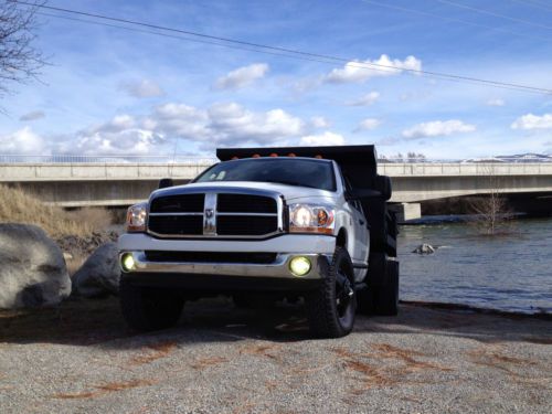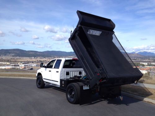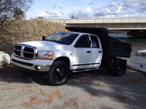 2006 Ram 3500 4x4 Diesel Specialized owner operator Cummins 3500 dump truck. This truck will impress any new owner along with those who see it on the road. While owning this truck it has not seen snow except for a brief moment on one of our passes. It has had regular maintenance done and has had Synthetic Schaeffers oil in all lubricating points. The truck was used for my landscape business and the only reason for selling is to get into a larger truck. This truck was rare due to its low mileage motor and the quad cab with the Goodwin dump body installed. I wanted something I could use as a daily driver to pick up the kids while on my way home from a job. This truck was never overworked by any means as it towed a 6,000lb trailer and still runs and shifts like a new truck. The 6spd manual slides through the gears like butter and doesn't leak a drop of oil. Any new owner will love this truck! Some Nice Features