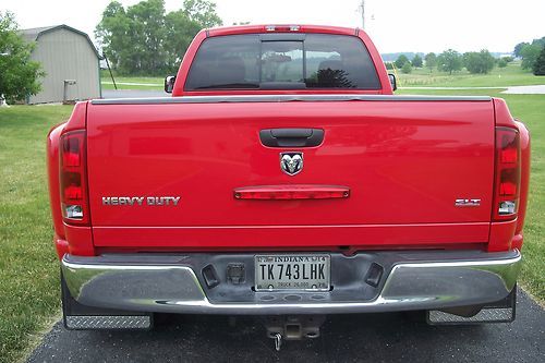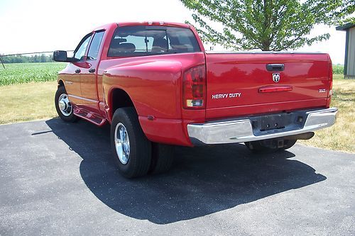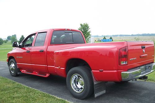 2005 Dodge 3500 dually. Carolina truck till last year. Super clean on bottom side. Never any damage. Loaded with all the normal options except navigation. Options include premium 40/20/40seat, light group, towing group, 4-speed automatic transmission,anti-spin axle,cummins turbo diesel,sliding rear window,power mirrors,fog lamps, Infinity stereo steering wheel controls,etc. Red and beautiful. Your welcome to come and inspect in person. Phone 260 667 4289