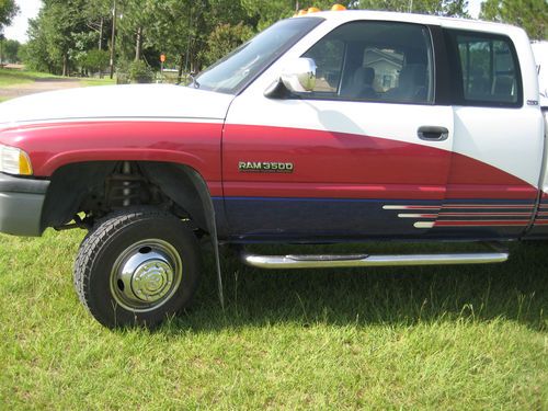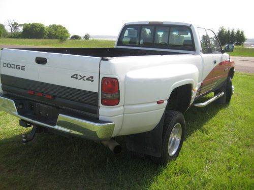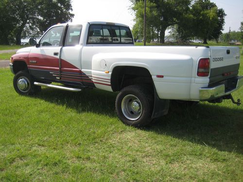 1996 DODGE RAM 3500 DUALLY EXT CAB 5.9L DIESEL CUMMINS ONLY 81 K ACTUAL MILES! NICE PAINT COLORADO TRUCK NO ACCIDENTS INSIDE AND COMPLETE DASH NOT CRACKED . HAS NICE FRONT TIRES ABOUT 75 PERCENT TREAD ON ALL TIRES AND . POWER WINDOWS, LOCKS, CRUISE, TILT, 4X4, A/C IS ICE COLD! THIS IS A STOCK CUMMINS NOTHING HAS BEEN DONE IN UPGRADES BONE STOCK. GETS GREAT GAS MILEAGE WITH ONLY 81193 MILES THE ENGINE ISNT EVEN BROKE IN! ABSOLUTELY NO LEAKS HAS NEW REBUILT AUTO TRANSMISSION. AWESOME TRUCK VERY RARE TO FIND LOW OF MILEAGE. HAVE CLEAN TITLE FEEL FREE TO COME AND SEE RUST FREE PLEASE CALL 903 383 2404 IF NO ANSWER PLEASE LEAVE A MESSAGE K I WILL RETURN YOUR CALL I HAVE THREE HOUSES TX CO AND AZ RIGHT NOW THE TRUCK IS IN TX