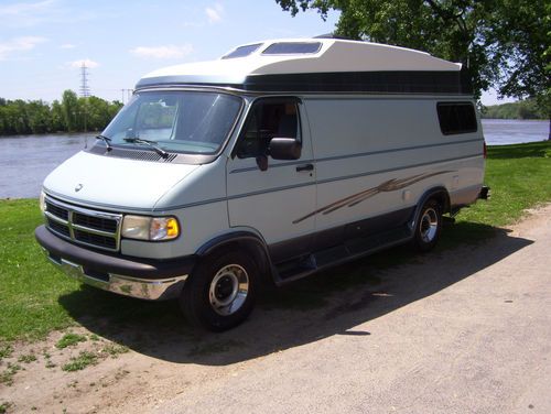 Up for auction is a nice 1997 Dodge Ram B class travel van. It is equipped with everything you would need to get lost on the raod. It has a sink, hot water heater, stove, fridge and furnace. It has propane for the stove/furnace and electric hook ups for everything else. It is already prewired for a TV, but does not have an antenna. The rear windows are equipped with built in screens to keep the bugs out. There is an electric fan in the top to provide more circulation. There are also some nice skylights which come with curtains if it gets to bright. Other curtains are also included for the front windshield area and all the other windows. It is capable of sleeping 2 comfortably and the sleeping area doubles as an eating area complete with a table that stores up above. The cloth interior is in excellent shape and has never been smoked in. All the cabinets are wood grain and provide abundant storage.This vehicle has ice cold air and a Pioneer cd player with remote. It is approximately 19 feet in length and rests on a 3/4 ton chassis. If you have a boat or trailer, it does include a towing package. All the tires are in good shape with very little wear. The body is rust free, but there are a few small surface areas located behind where the rear plate would attach to the bumper. I personally drove this van to Nashville last fall pulling a 2 place motorcycle trailer and had no issues. It is ready to go so bid with complete confidence! If you have any questions give me a call @ 815-973-four434. I am a licensed Illinois auto dealer so tax, tag and title will be extra if applicable. Thanks for looking and good luck!