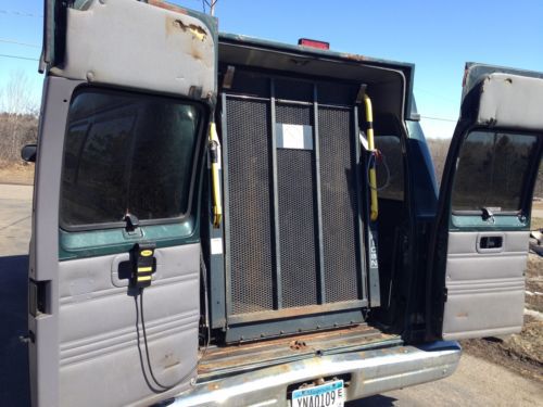 Mechanically sound van with a handicap lift that works well. There is rust on the body (as seen in pictures). This was a fleet vehicle prior to me purchasing it (maint. records included). Runs good and drives good. There is a "clunk" in the front end when hitting some bumps but it goes down the road fine. Ratchet tie downs for securing wheel chair are included. No Reserve! Located less than 200 miles north of Minneapolis. Being sold As-Is. Please email me with any questions and I'll do my best to answer them. Also, I took my best guess on the trim style listed under item specifics. |