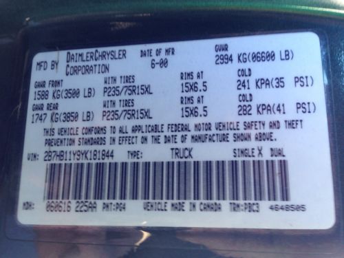 2001 dodge ram 2500 van base standard cargo van 3-door 5.2l(US $1,600.00)