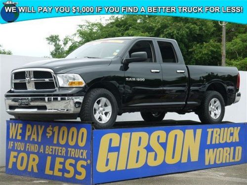 WWW.GIBSONTRUCKWORLD.COM*2012 Dodge Ram 1500 SLT Quad Cab* Carfax 1 Owner with powertrain warranty, good thru 12/4/16 or 100k miles. Also comes with1 year REAL FREE BUMPER TO BUMPER WARRANTY honored anywhere in the United States with our exclusive 15 DAY RETURN/EXCHANGE POLICY! That is how confident we are in our trucks! Do not make a $3K+ mistake, B4 you buy a used truck demand to see shop bills & have the truck inspected by a 3rd party! Riding on a nice set of tires, CD player, steering wheel controls, tilt steering, cruise control, power sliding rear window, keyless entry with alarm, bed liner, power windows, power mirrors, power door locks*Gibson is the only dealer that gives a REAL FREE 12 MONTH BUMPER TO BUMPER WARRANTY VALID ACROSS THE UNITED STATES, 12 MONTHS FREE MAINTENANCE FROM OUR 23 BAY SERVICE DEPARTMENT AND OUR EXCLUSIVE 15 DAY RETURN/EXCHANGE POLICY! It sounds too good to be true, but it is true! We will pay you $1,000 if you find a better truck for less, Gibson Truck World is Nations ahead of the competition! AT GIBSON TRUCK WORLD AN EDUCATED CONSUMER IS OUR BEST CUSTOMER**Repair Description: Total Invested = $627.79*10 Mile Road Test, 135 Point Inspection, Lube, Oil & Filter, Replaced Front Shocks, Replaced Air Filter & Wiper Blades, Replaced Tag Light Bulbs, Balanced & Rotated Tires, AlignmentBattery Condition Test : Good, Alternator Condition Test : Good*Labor time quoted by All Data Universal ShopKey* Gibson Truck World in Sanford, FL has the lowest price for used trucks period! Gibson specializes in pre-owned Ford trucks, Dodge trucks, Chevrolet trucks, GMC trucks, Jeeps and SUVs. Gibson Truck World sells, ships trucks across the country & worldwide. We have a large selection of F150, F250, F350, F450, F550, RAM 3500, 2500, 1500 Chevy or GM 3500, 2500, 1500 quality pre-owned pickup trucks.