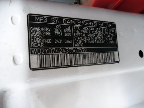 2003 DODGE (FREIGHTLINER) 2500 158" W/B SUPER HIGH ROOF