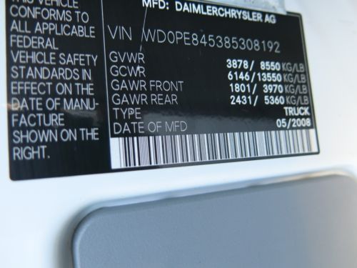 Additional Info: (VIN: WD0PE845385308192), arctic white ext. with black fabric seats, 188,050 miles, 5-spd. auto trans, extended 170" wheel base with 5 doors, 3/4 ton chassis, high top version with solid panel sliding door on passenger side, rear barn doors with no windows, seats two, 3.0L 24V DOHC V6 Mercedes-Benz common rail turbo diesel engine (154 hp. / 280 lb-ft. torque), alloy block, electronic fuel injection, rack and pinion power steering, independent front suspension with leaf springs and shock absorbers, solid live rear axle suspension parabolic leaf springs and shock absorbers, 4-wheel disc brakes with ABS and brake assist, stability and traction control, adaptive electronic stability program with electronic roll mitigation, electronic brake force distribution, roll movement intervention sensor, Options incl: power windows and door locks with keyless entry (1 key and 1 remote) , cruise control, tire pressure monitors, cold A/C, adjustable steering wheel, Adrian steel divider with opening door between cargo / driver area, lighted cargo area, rear step and trailer hitch with electronic trailer brake controller installed. Rear is completely open with some Jemrack open bunk type storage shelves hanging high on the walls. Drives extremely well and everything works as designed. Just detailed and is in exceptionally nice condition inside and out - if you stood next to this Sprinter and I told you it had 40,000 miles you wouldn't doubt it, tires are very recent front and rear. Most owners report fuel mileage anywhere from 21-25 mpg., 25.0 gallon fuel capacity. With diesel prices at $4.00 / gal. think of the savings over a regular box truck or cargo van. 1 owner since new with a clean AutoCheck report and the new 3.0L motor and updated body and interior. Approx. $44,000.00 new MSRP. Under 10,000 GVWR so you don't need a CDL to drive it. These are rare and very difficult to find, ESP in this condition! US built in Pooler, GA. Specifications: Length: 273.2" Wheelbase: 170.3" Box / cargo length: 162" Width: 79.7" Cargo width wall to wall: 70.1" Cargo width between wheel wells: 53.1" Height: 107.5" Box / cargo height: 77.5" Wheelbase: 144.3" Ground clearance: 6.9" Interior cargo capacity: 494 cubic feet Max towing: 5,000 pounds Max payload: 3,301 pounds Gross weight: 8,550 pounds Curb weight: 5,267 pounds Bid with confidence - we have been a member of eBay since November 1998 and we have an excellent feedback rating!! We do have a complete collection of photographs that document every aspect of this vehicle, so please request them! And be sure to mail us if you have any questions! Please also keep in mind that this vehicle is being advertised via other retail venues, so we reserve the right to cancel this auction at any time and without notice. God bless and good luck in bidding! *This vehicle is located in Southern Indiana - more information or photographs are available upon on request. While every reasonable effort has been made to ensure the accuracy of the description of this vehicle, mistakes regarding hp ratings, options, etc. can be made. I have also done my best to be very honest and very critical about the cosmetic and mechanical condition of this vehicle. Of course, it is not always possible to pick-up on every minor detail or flaw. Please keep expectations realistic as this is a pre-owned vehicle, and I have personally found blemishes on brand new un-driven vehicles. If you are an exceptionally detailed oriented person, please contact me to verify any information directly, and I will do my best to specifically photograph anything you request and to answer any of your questions to the best of my ability. |