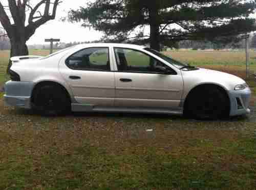 Hi I have for sale my 97 stratus, before you read to much, I'll tell you right from the beginning it has a chipped wrist pin on one cylinder, fixable? Yes, I just don't have time for it. What that means is at idle and slowing down it has an annoying warping sound coming from it, now with that said, it's starts, drives and runs perfectly fine, there is no loss of power, accelerating , or anything, it does not smoke or burn or leak oil. My mechanic said it can be driven for the rest of time with it like it is, you would just have to deal with the noise, now at acceleration and driving speeds the noise is gone, that's why I say it's no big deal. The tranny is great as is the rest of the car. The fan only blows on high and the ac and heat work great. All power options work great and the glass is in good shape.The interior is all black and dark grey, the carpet is new micro fiber as is the door panels and rear deck and armrest, the seats are still factor rown but have seat covers, There is no rust and the body kit was done professionally, not some back yard job its all duraflex,. The front bumper is thickens and reinforced for durability, the side skirts are molded into the car for show purposes, the rear bumper license plate area was shaved smooth and a frenched plate was built into the trunk lid along with led studs to lights the plate up, also I added a custom 3rd brake light wing so yes it's legal because the trunks 3rd brake light and key is shaved and so is the radio antenna, there is a hidden antenna in the windshield for the radio. The head lights are brand new with clear side corner blinkers and the rear lights are tinted. The car is perfectly drivable the way it is so it can be picked up and driven home with no problems. If you have any questions please ask, I'm only selling because my wife wants another atv, so if you want to trade me one for the car, just let me know what you got, thanks