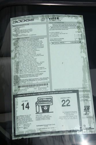 1994 Dodge Viper Rt/10 Viper Red Roadster Never Tagged (19 Miles) on 2040-cars