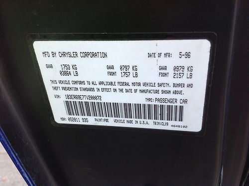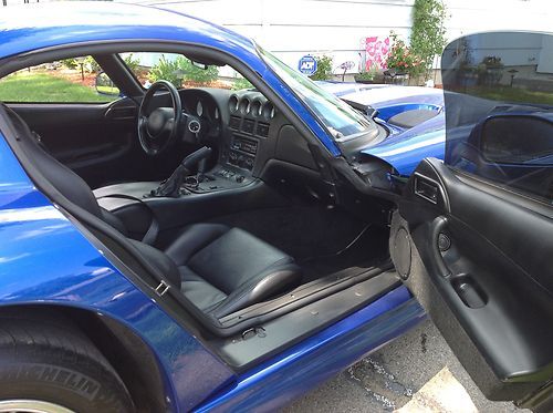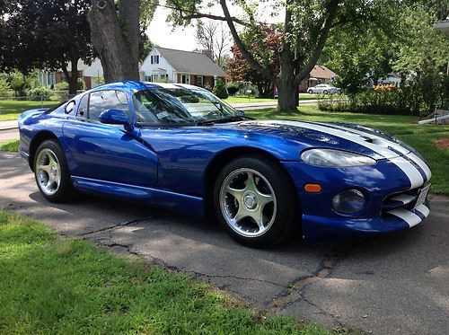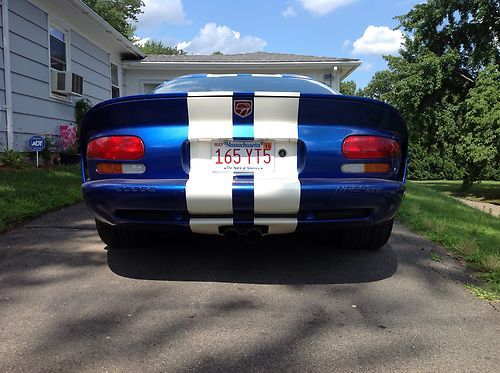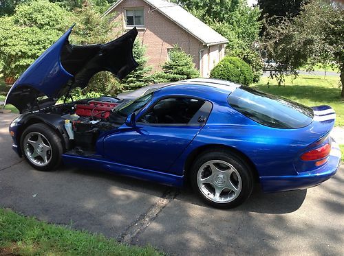 Up for sale is my beautiful 1996 Dodge Viper GTS Blue with white stripes the icon of vipers the only year that the stripes go through the license plate housing and it does make a difference it makes the whole car. This car is stock .This is a one owner viper with 39,000 miles on this car was well maintained well taken care of. Servicing this vehicle was as followed we changed oil every 3000 miles with mobile one.. Recently within the last 500 miles this viper has had four new rotors and all new brake pads install.