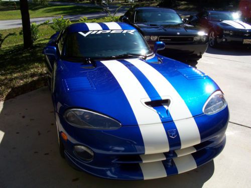 Offered is an immaculate and very rare 97 Viper gts in blue with white stripes. Car is loaded and stock with exception to a borla exhaust system that was installed. A set of HRE wheels and tires valued at $6K also comes with car. A new car cover and the stock polished wheels and tires also comes with purchase. Paint is original and in very good condition. The front facia has a few tiny nicks from small particles as to be expected. Interior is in excellent condition with no rips etc. Buyer is responsible for pickup etc.