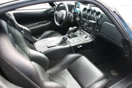 other cars with similar set ups make 430-440hp at the wheel. Recent services completed (2013): - Rear differential re-sealed - Brake fluid changed - Clutch fluid changed - Flush coolant and changed - Differential fluid changed - Transmission fluid changed - New thermostat (2014) Other upgrades and notes: - Tires (2012) - tread left is excellent - Windows tinted black - New Sylvania ZXE light bulbs (main and fog lights) - the brightest white halogen available - Stoptech front big brake system, rears rotors hole-drilled - Brake Proportioning Valve (adjustable by knob so front large brakes don't lock-up before rears due to size/pressure differences - currently adjusted correctly) - Aftermarket radiator - Hurst short shifter - 4.11 gears (installed properly - speedometer reads properly) - 3" high flow cats, straight pipes exhaust, muffler delete - New K&N cold air intake (original box will come with car also if you want to change it later) - New double platinum spark plugs - New 10MM racing spark plug wires - 2-10inch kenwood subwoofer, TypeR apline front speakers, Infinity rear speakers, 2 amps (infinity 4 channel running mains - 1200rms, 1000rms running subs) all purchased this year. Pioneer deck with usb hookup and remote. As you can see from the photos the car is in excellent condition for its age and has all "goodie" upgrades any Viper owner needs to do. Only thing it needs is an A/C recharge. |