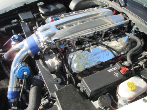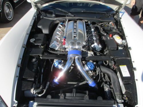 Custom twin 78mm turbochargers Outside of intake and throttle body to be show polished THIS CAR WAS PREVIOUSLY WRECKED AND HOLDS A REBUILT TITLE. THERE WAS NO FRAME DAMAGE AND NO AIRBAG DEPLOYMENT. PARTS REPLACED WERE PASSENGER SIDE 1/4 PANEL, REPAIR REAR BUMPER, REPAIR FRONT BUMPER, REPLACE PASSENGER INNER AND OUTTER TIE ROD, AND INNER FENDER. THE CAR RUNS AND DRIVES LIKE NEW AND HAS SEEN HIGH SPEEDS SINCE ITS REBUILD. THIS IS A GREAT WAY TO GET A CAR THAT WOULD NORMALLY BE WELL INTO THE 6 FIGURES AT NEARLY 50K LESS BECAUSE OF THE TITLE ISSUE. WE HAVE BEFORE PICS OF THE CAR AVAILABLE UPON REQUEST.
