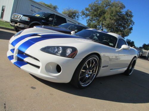 2006 VIPER SR-10 BUILT BY UNDERGROUND RACING. THIS CAR IS THE ONLY ONE LIKE IT IN THE WORLD. THE WHITE/BLUE ANNIVERSARY EDITION VOI9 IS ONE OF THE RAREST VIPERS EVER MADE. THIS ONE IS NUMBER 48 OF 100, BUT IS THE ONLY ONE THAT WAS EVER BUILT BY UGR. THE CAR HAS THEIR STAGE 3 TWIN TURBO 522CI STROKER ENGINE. OTHER MODIFICATIONS INCLUDE A FULL FUEL SYSTEM, FULLY ADJUSTABLE SUSPENSION, FULL CUSTOM SOUND SYSTEM VALUED AT OVER $10000, CUSTOM HRE 20" WHEELS, NAVIGATION, BACK UP CAMERA, UPGRADED BRAKE ROTORS, AND SO MUCH MORE. THIS IS PROBABLY ONE OF THE BADDEST VIPERS ON EARTH.