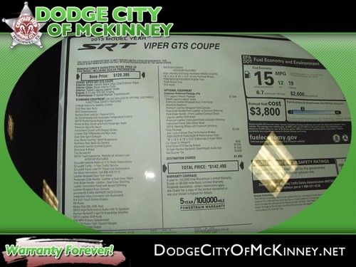 Brand New 2013 Srt Viper Gts. Venom Black With Billet Silver Racing Stripes. on 2040-cars